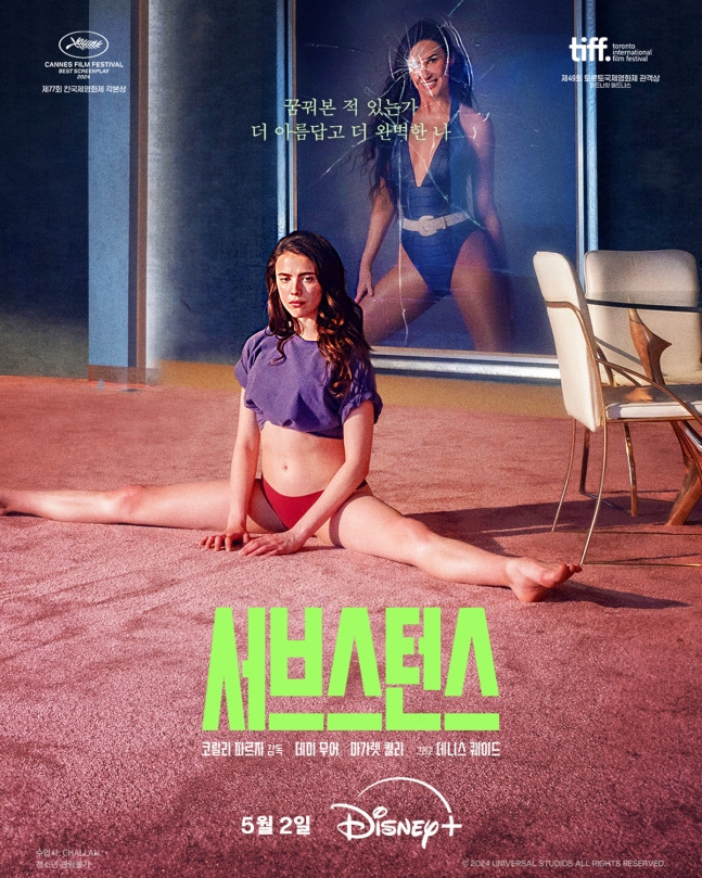 디즈니+에선 데미 무어가 미친 연기를 선보인 <서브스턴스>가 5월 2일에 개봉🔥